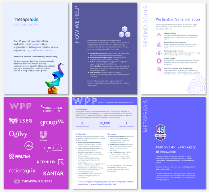 The client needed a refreshed company brochure that clearly explained who they are, what they do, and the value they deliver, while introducing a more striking and confident visual style.